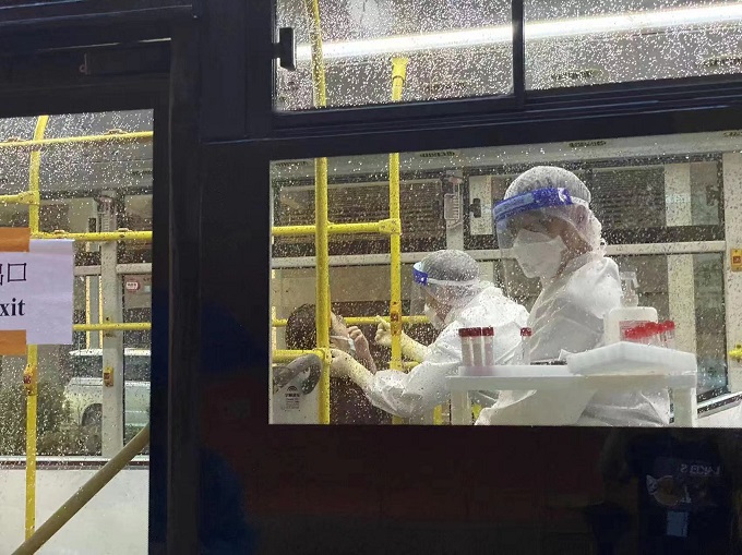 流動核酸採樣車上門為地盤工人開展採樣服務